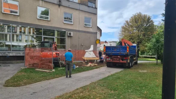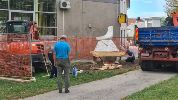 Danas su izvršeni radovi na premještanju skulpture golubice, koja je posljednjih godina krasila današnji Trg Petra Stipetića.