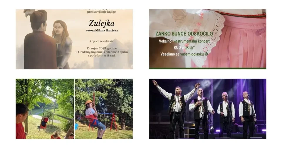 Osim toga, program proslave Dana grada večeras nam donosi i vokalno-instrumentalni koncert KUD-a Klek “Žarko sunce odskočilo”. Koncert će se održati u Đulinom vrtu s početkom u 19 sati. U slučaju kiše koncert će biti održan u ogulinskom Pučkom otvorenom učilištu.