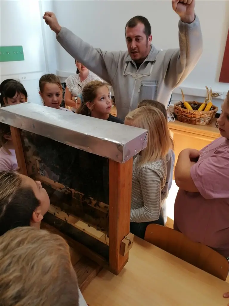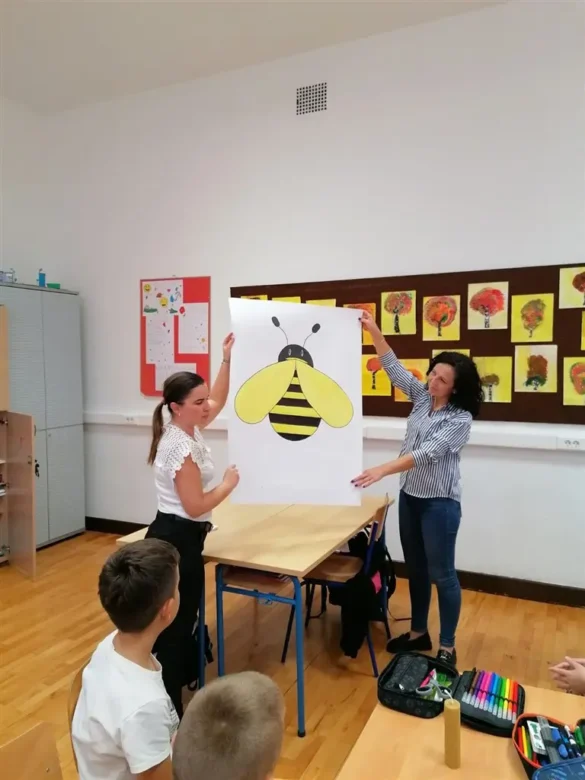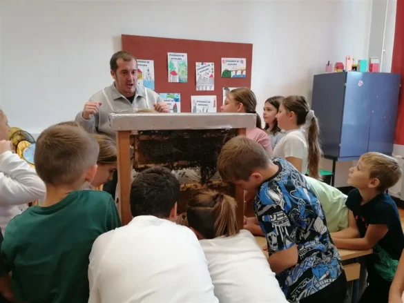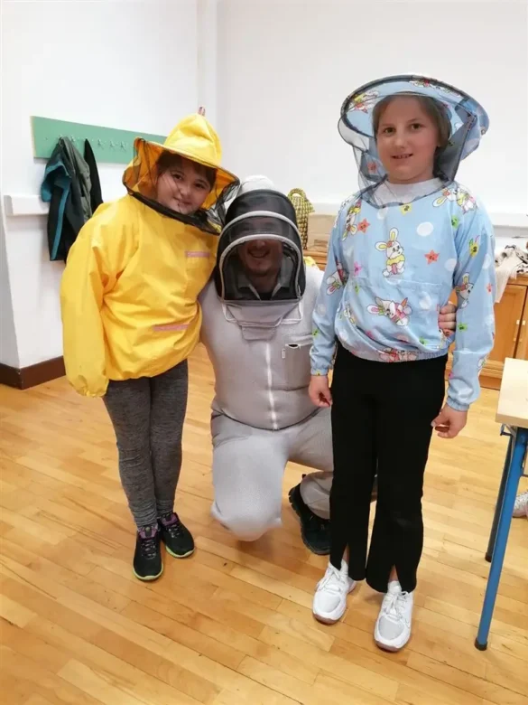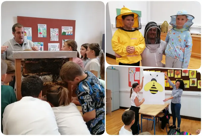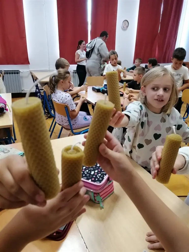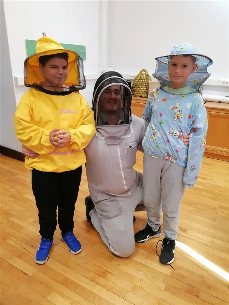 Nastavnik David Fabijan, uz asistenciju vjeroučiteljice Vesne Žilić Vrbanić i knjižničarke Ive Brajdić, održao je vrlo korisno i zanimljivo predavanje o pčelama. Učenici su imali priliku čuti mnogo malo nam poznatih, a vrlo zanimljivih činjenicama o životu pčela i njihovoj ulozi u prirodi, o tome kako pčele vide, o građi njihova tijela, na koji način skupljaju pelud, kako žive zimi , a kako ljeti,… Isto tako, imali su priliku vidjeti kako košnica izgleda izbliza i proučiti građu košnice. Učenici su također isprobali i zaštitna odijela za pčelare. Nakon toga je uslijedila radionica izrade svijeća od pčelinjeg voska koje su učenici ponijeli kućama, a potom su na plakat upisali sve što su naučili o pčelicama.