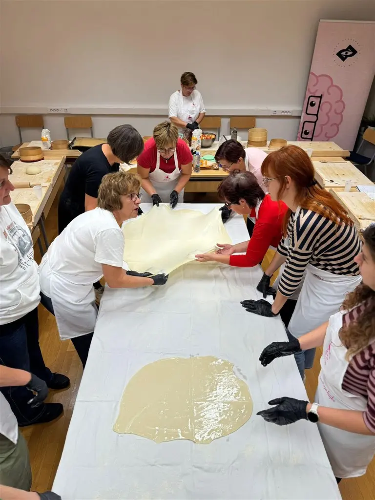 Pod njihovim stručnim vodstvom polaznici su savladali umijeće miješenja, razvlačenja i pečenja štrudla koji, kako kažu, „osvaja na prvu“. Nakon praktičnog dijela uslijedila je i degustacija mirisnih kolača, što je zaokružilo ovu veselu i poučnu radionicu.