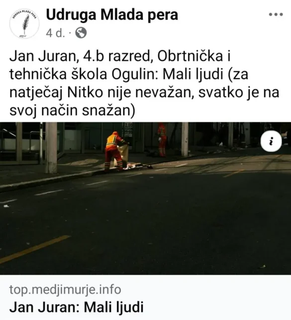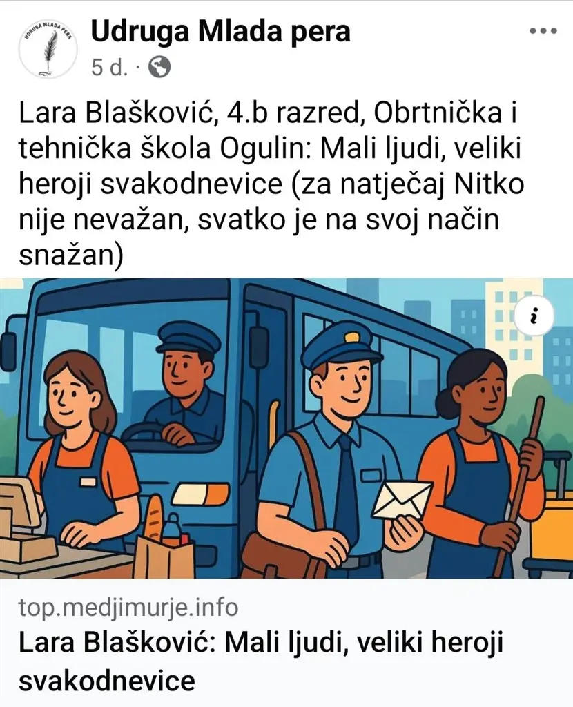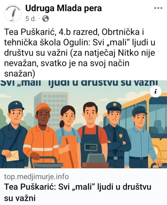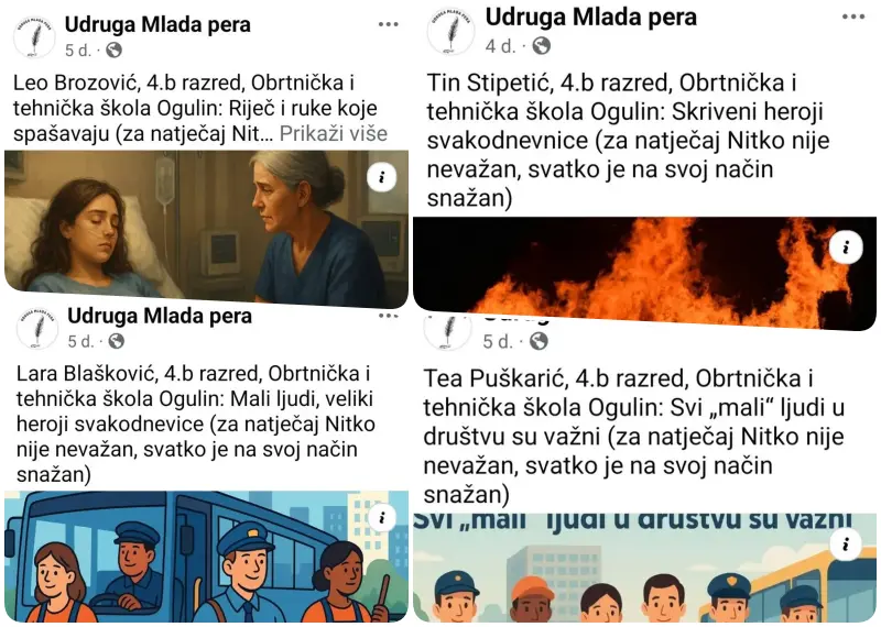 Radovi učenika ogulinskog OTŠ-a izabrani su za Top generaciju i zbornik. Naime, iz škole su izvijestili kako je krajem prošle nastavne godine Udruga Mlada pera objavila je natječaj “Nitko nije nevažan, svatko je na svoj način snažan”. Od tada su učenici 4.b razreda, pod vodstvom prof. mentorice Valentine Ceranić, stvarali kratke priče o običnim malim ljudima naše svakodnevice. Tematika je bila poticaj za razvijanje empatije, promišljanje o vrijednosti pojedinca u društvu i kreativno jezično stvaralaštvo.
