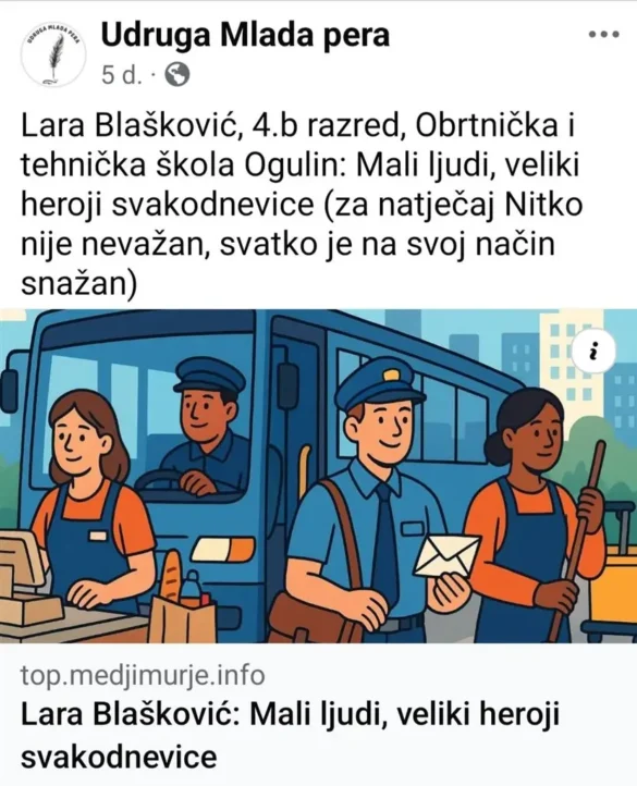 “Pisanje o “nevažnim, nevidljivim” ljudima, pomoglo je učenicima sagledati vrijednost čovjeka i poštenog rada, ali i činjenicu da njihovi mali doprinosi mogu biti ključni za funkcioniranje zajednice.