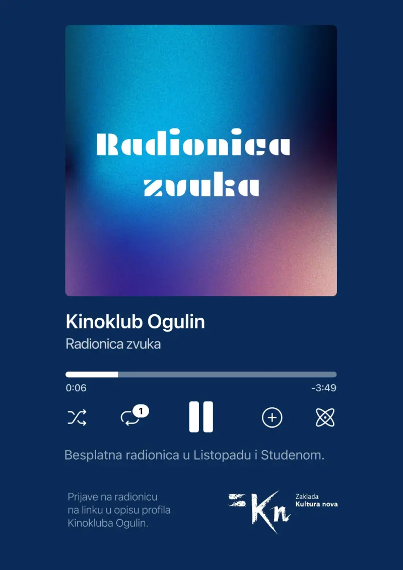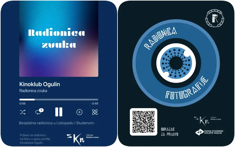 Kinoklub Ogulin pokreće dva nova besplatna edukativna programa namijenjena mladima i svima zainteresiranima za razvoj kreativnih vještina u području zvuka i fotografije. Prijave za oba programa vrše se putem iste poveznice: https://forms.gle/xh31tCis2QpXsrQA6