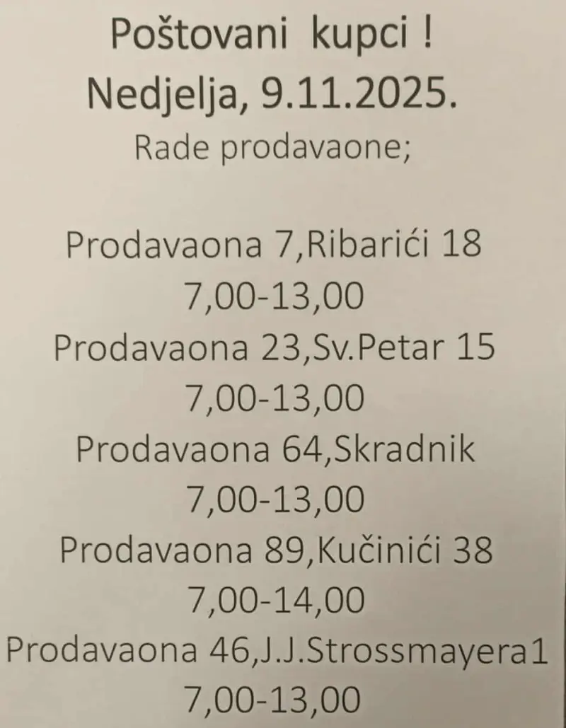 Aktualno OG sada Ogulin PROMONedjeljna kupovina 09. studenog 8. studenoga 2025.I ovaj put donosimo vam popis trgovina Gavranović i prodajnih mjesta MIVIT pekare koje koja rade ovu nedjelju, te njihovo radno vrijeme. GAVRANOVIĆ TRGOVINE