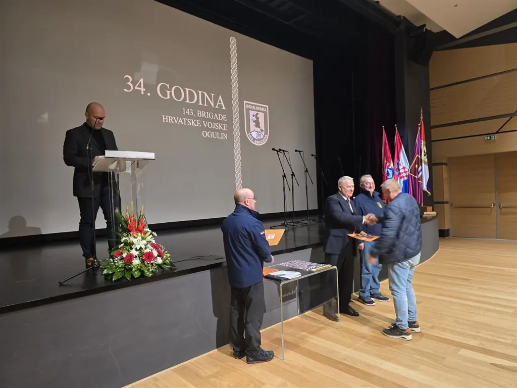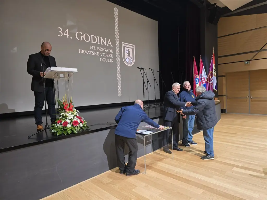 Nakon svete mise u srijedu za sve poginule, svečano obilježavanje 34. obljetnice osnutka 143. brigade HV Ogulin nastavljeno je danas polaganjem vijenaca na Trgu hrvatskih rodoljuba, te svečanom sjednicom u Zlatnoj dvorani Pučkog otvorenog učilišta Ogulin.