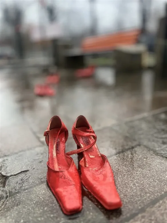 Zašto baš crvene cipele? Crvena simbolizira ljubav i strast, ali istodobno i krv te nasilje. Prazni parovi cipela predstavljaju žene koje su izgubile život ili su trpjele zlostavljanje, ali i put kojim žrtve mogu krenuti prema oslobađanju od nasilja.