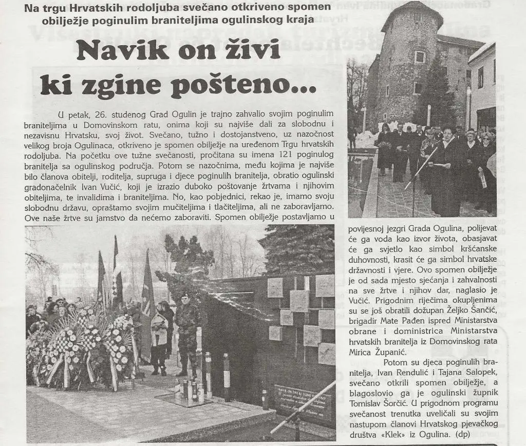 Opširnije o svemu možete pročitati u članku koji je u prosincu 1999. objavljen u Ogulinskom listu.
