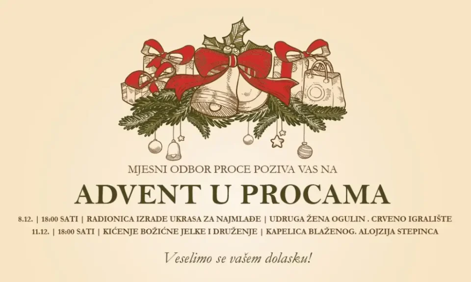 Mjesni odbor Proce poziva vas na Advent u Procama, na dva topla, blagdanska druženja za sve generacije!