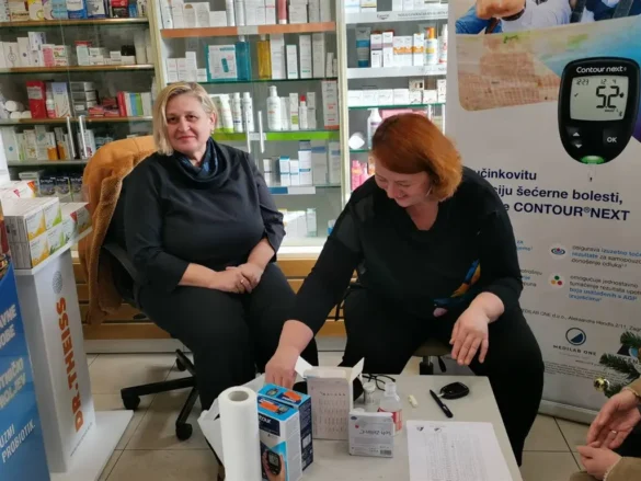 Ogulinska bolnica je danas tijekom prijepodneva u ljekarni Pablo održala akciju besplatnog mjerenja razine šećera u krvi. Šećer je mjerila sestra Antonija Suvajac, bacc.med.techn., pod nadozorom dr. Mićane Nožinić Tatalović, spec. interne medicine / dijabetologinje.