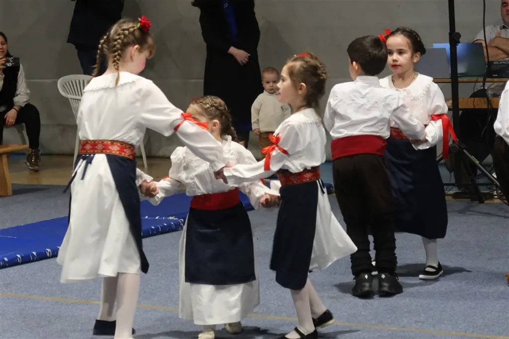 Pred mnogobrojnom djecom i roditeljima program su otvorili članovi Srpskog kulturnog društva Prosvjeta, Pododbora Ogulin i Plaški, zajedničkim koreografijama. Mnogobrojna mlađa dječja folklorna sekcija koja u ovom obliku djeluje tek 3 mjeseca predstavila se je spletom igara. Nakon mlađe nastupila je i starija dječja folklorna skupina po prvi puta u suradnji dva pododbora.
