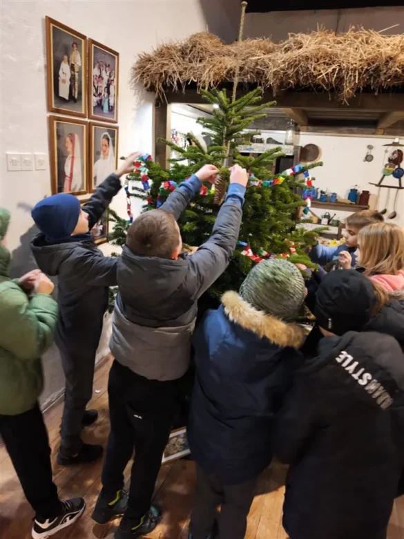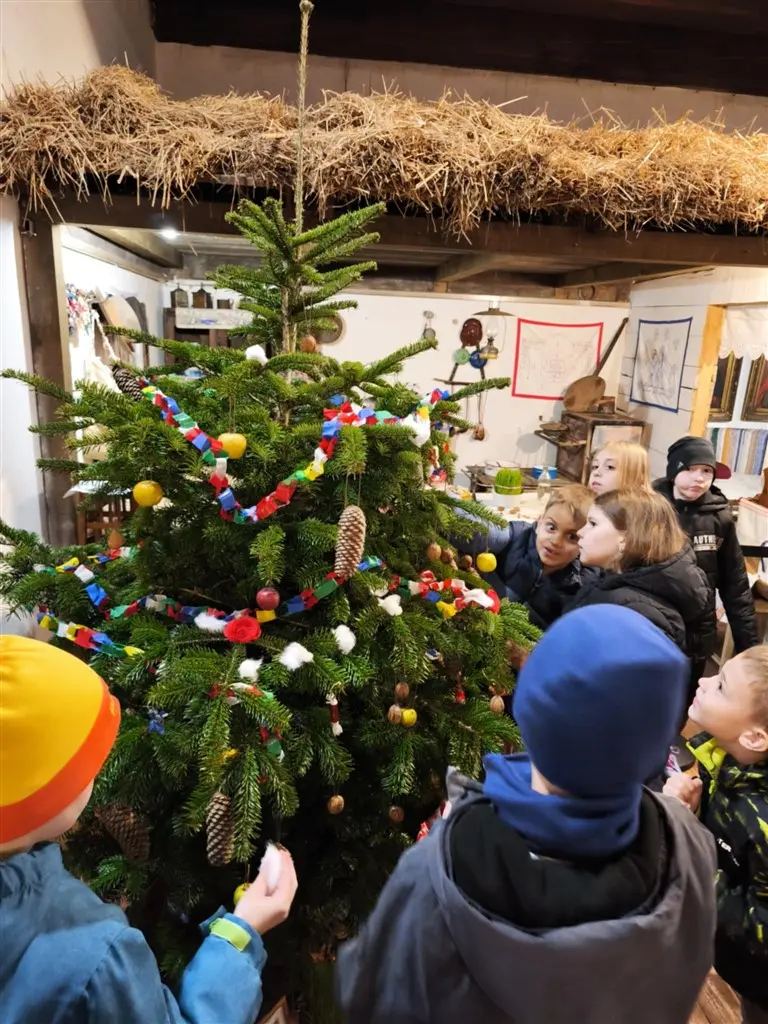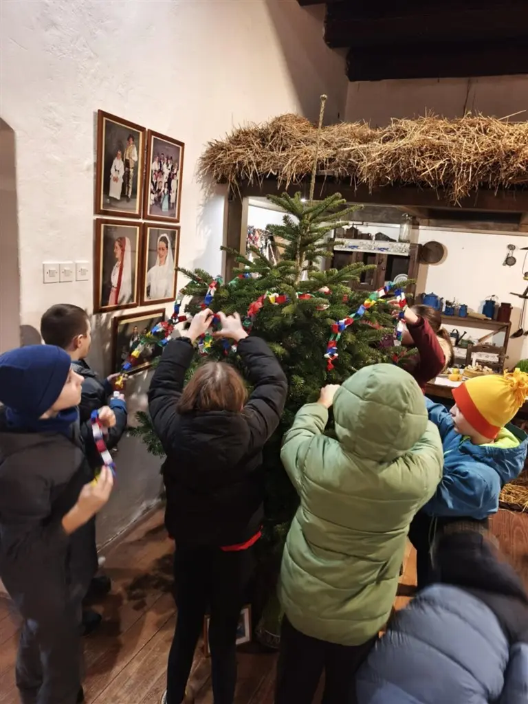 Djeca su najprije imala priliku upoznati se sa starim božićnim običajima te razgledati nekadašnje božićne ukrase iz ostavštine obitelji Štajninger. Iako su priznali da se danas rijetko šalju božićne čestitke, s velikim su zanimanjem razgledali stare prigodne čestitke iz muzejskog fundusa. Nakon toga, s puno veselja i entuzijazma prionuli su kićenju božićnog drvca.