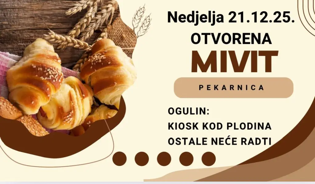 Aktualno OG sada OgulinNedjeljna kupovina u MIVIT-u i Gavranoviću 20. prosinca 2025.20. prosinca 2025.I ovaj tjedan, uoči nedjelje, donosimo popis prodajnih mjesta MIVIT pekare i trgovina Gavranović koji ovu nedjelju rade. Bacite oko: