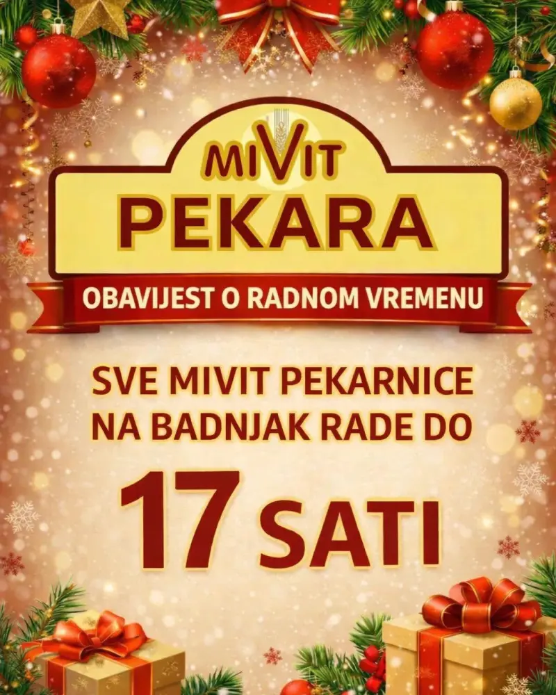 Odlučite li se još sutra za neku završnu kupovinu ili nabavu svježeg kruha, evo kako rade trgovine Gavranović, a kako pekara MIVIT. Kako saznajemo iz ogulinskog MIVIT-a, sva njihova prodajna mjesta na Badnjak rade do 17 sati.