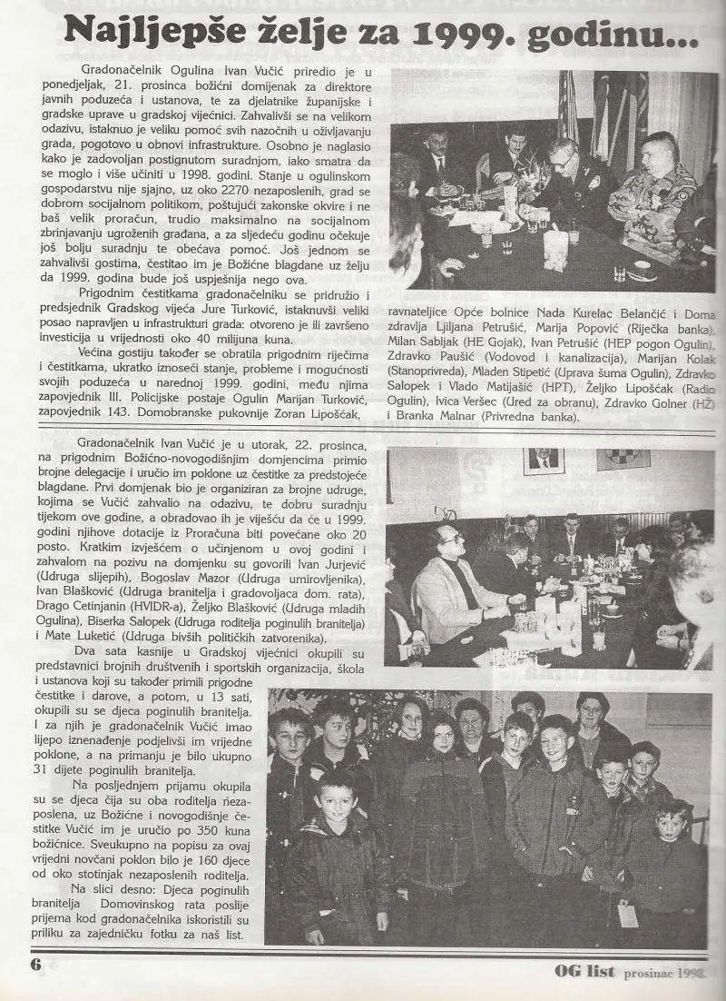 Kako se Božić obilježio pred 27 godina? O tome danas pišemo u našoj rubrici “Iz novinarske arhive”. Naime, tadašnji gradonačelnik Ivan Vučić upriličio je nekoliko domjenaka. Osim za direktore javnih tvrtki i ustanova, domjenci su organizirani i za predstavnike raznih udruga, škola i ustanova. Više o svemu možete pročitati u članku koji je objavljen u prosincu 1998. u Ogulinskom listu.