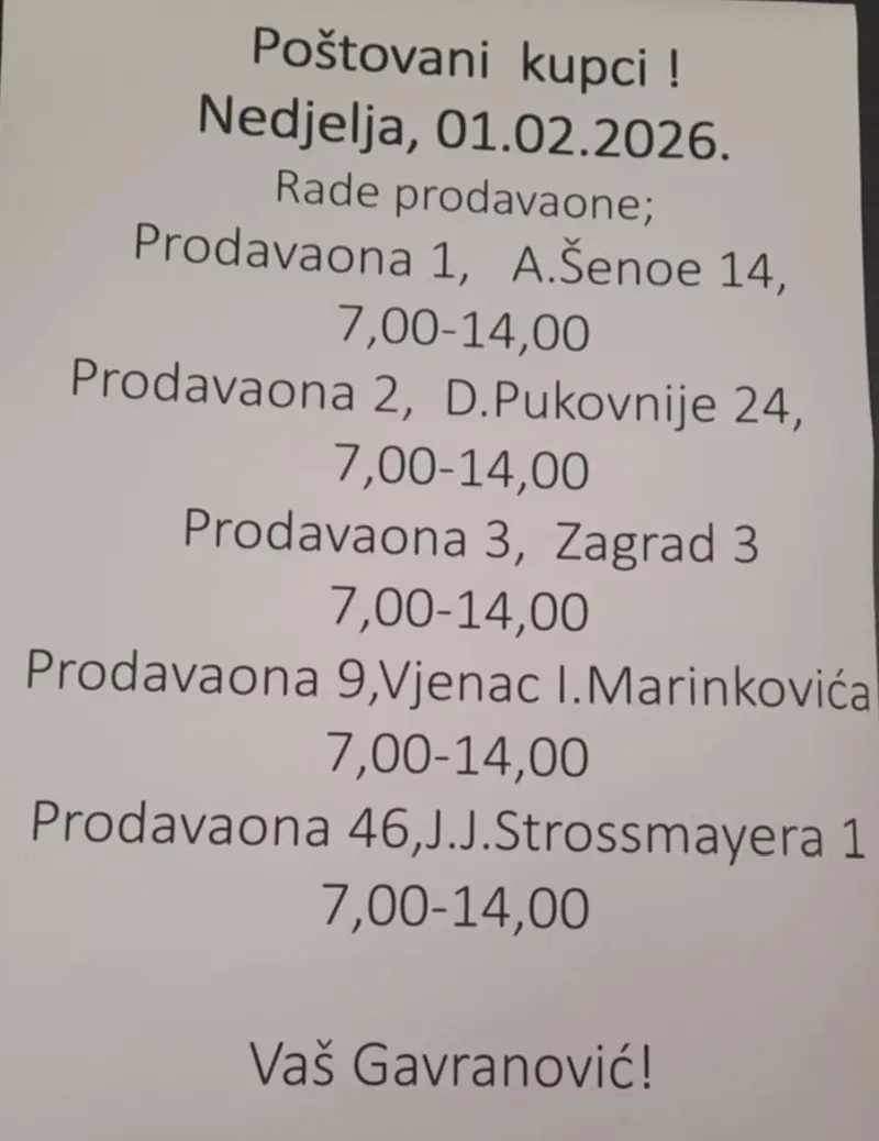 Aktualno OG sada Ogulin PROMOGdje u kupovinu na prvu nedjelju veljače? 31. siječnja 2026.31. siječnja 2026.Pred nama je još jedna nedjelja, prva u mjesecu veljači, a mi donosimo i informaciju o tome kako i koje trgovine Gavranović rade sutra te na koje prodajno mjesto MIVIT pekare možete otići po svježi kruh.