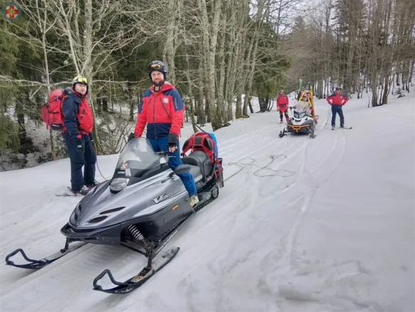 Motorne sanjke važan su alat zimskog spašavanja jer omogućuju brz pristup teško dostupnim područjima, čime se dodatno skraćuju vrijeme dolaska spašavatelja i transporta unesrećenog. (foto:HGSS)