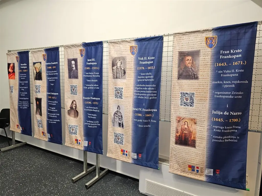 Izložbeni postav sastoji se od devet postera, čiju podlogu čini deveti od ukupno 14 sačuvanih listova Frankopanskog kodeksa. Na posterima je predstavljeno 14 članova obitelji Frankopan, uz ukupno 18 njihovih portreta i likovnih prikaza. U sklopu projekta izrađena je i mrežna stranica https://frankopani.zavicajni-muzej-ogulin.hr na kojoj su dostupne opširnije priče o životima ovih velikana, njihovim obiteljskim i rodbinskim vezama te njihovoj ulozi u hrvatskoj povijesti.