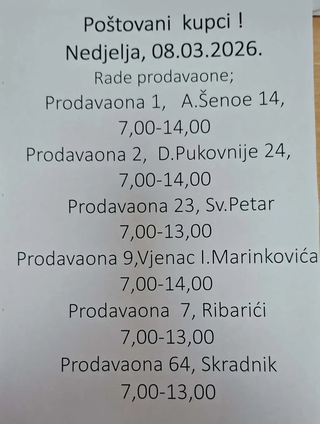 Aktualno OG sada Ogulin PROMONedjeljna kupovina 7. ožujka 2026.7. ožujka 2026.Kako će sutra, u nedjelju, raditi trgovine Gavranović, a kako pekara MIVIT, donosimo u nastavku.