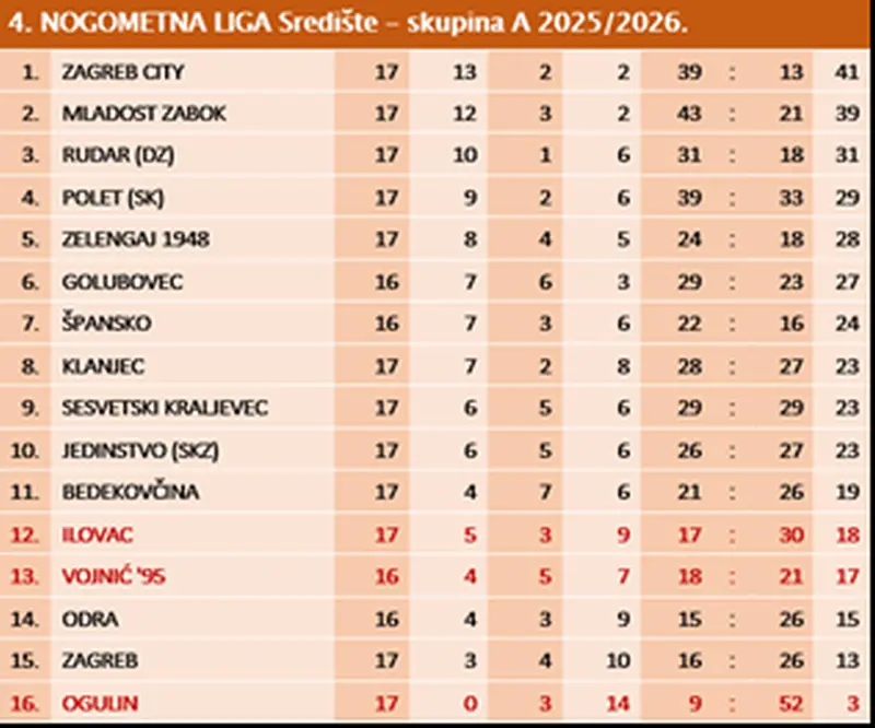 Nakon ovog boda nogometaši Ogulina ostali su na dnu tablice sa 3 boda (najbliži klubovi na dnu tablice imaju čak 10 bodova više), a idući vikend u 18.kolu u subotu igraju u Ogulinu protiv Jedinstva iz Sv.Križa Začretje.
