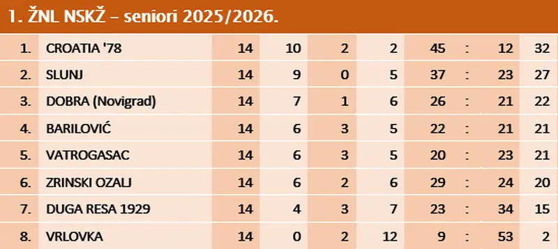 Počeo je proljetni dio prvenstva u obje županijske lige. U 1.ligi vodeća Croatia ’78 na svom je terenu u Žakanju slavila nad Zrinskim iz Ozlja s uvjerljivih 5:1. Slunjani su na svom Zupcu nadigrali posljednjeplasiranu Vrlovku s 3:0 i zadržali pet bodova zaostatka za Žakanjcima. Vatrogasac je u Belavićima bio bolji od novigradske Dobre sa 4:2. Duga Resa 1929 na svom je stadionu slavila nad Barilovićem s 2:0.