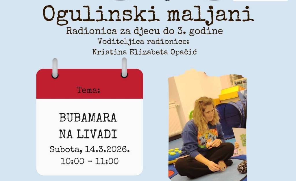 Radionica „Ogulinski maljani“ za djecu do 3. godine održat će se u subotu 14. ožujka 2026. s početkom u 10 sati u Igraonici za maljane...