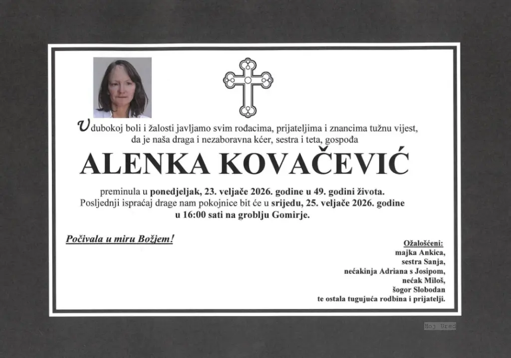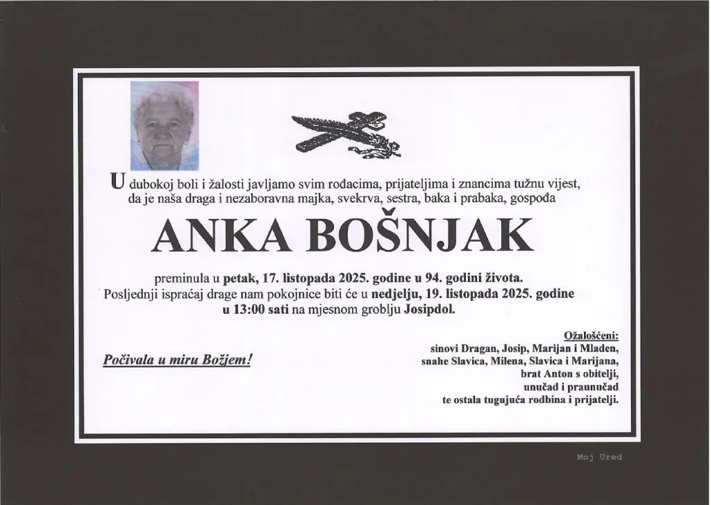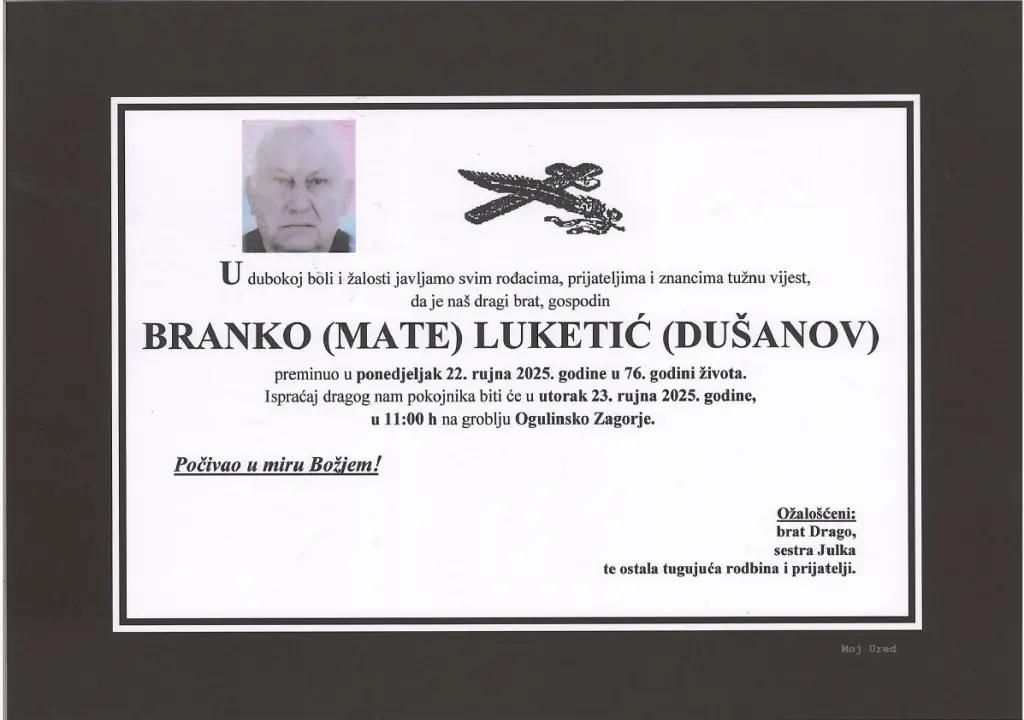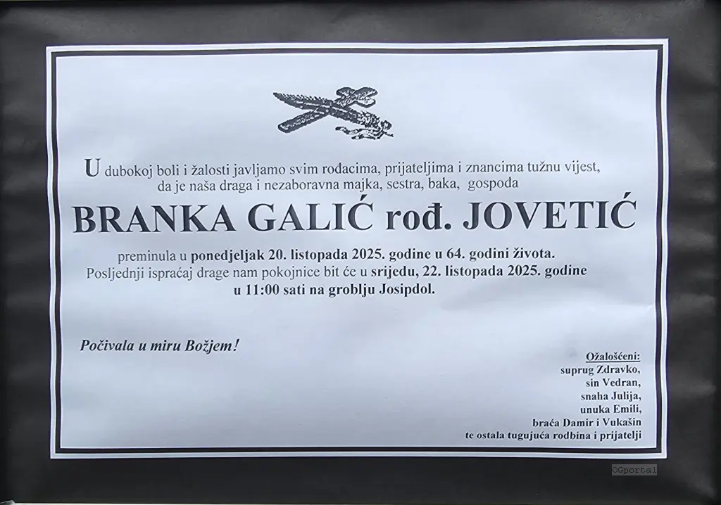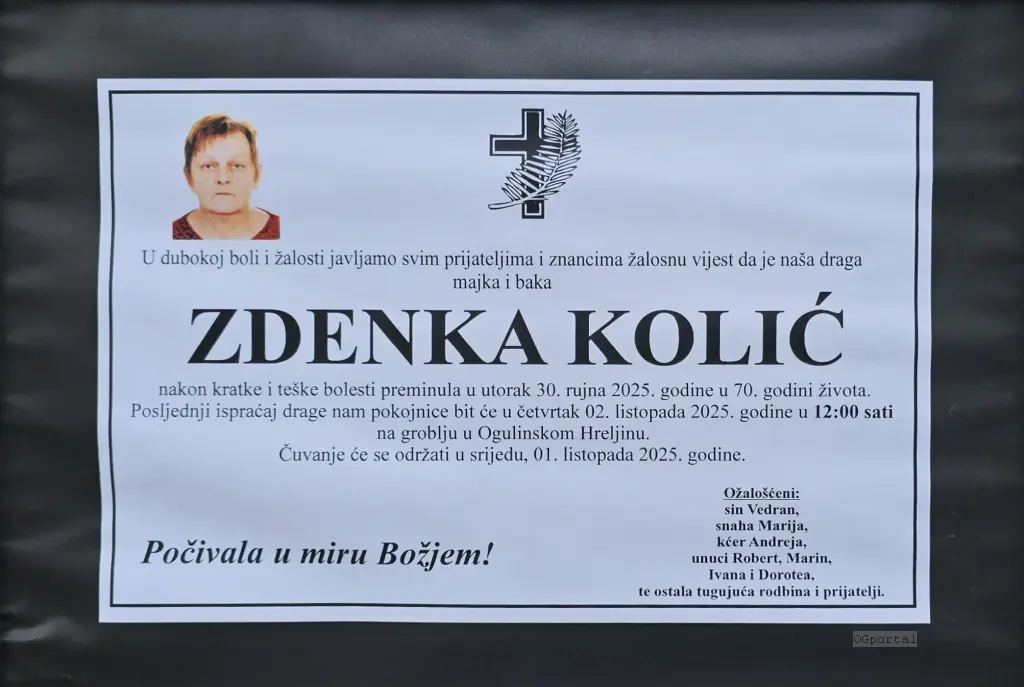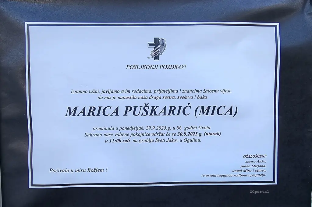 U ovoj rubrici objavljujemo osmrtnice s ogulinskog područja, a ideju da to činimo podržali su posebno i naši čitatelji koji ne žive u Ogulinu. Objavljujemo osmrtnice iz javno dostupnih izvora, te one koje nam pošalju obitelji preminulih.