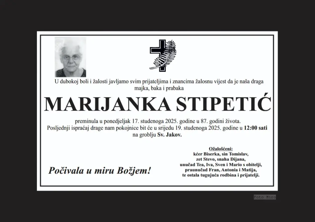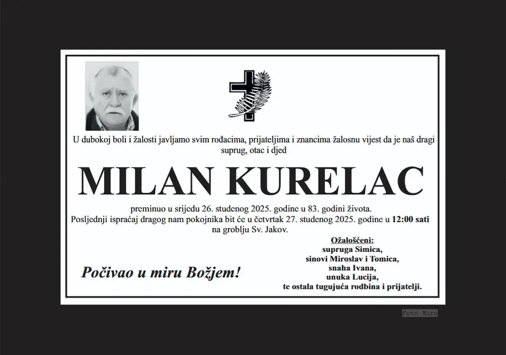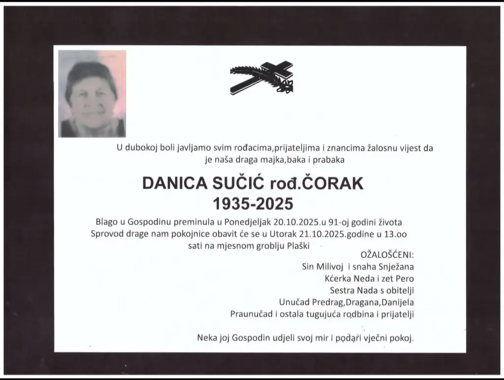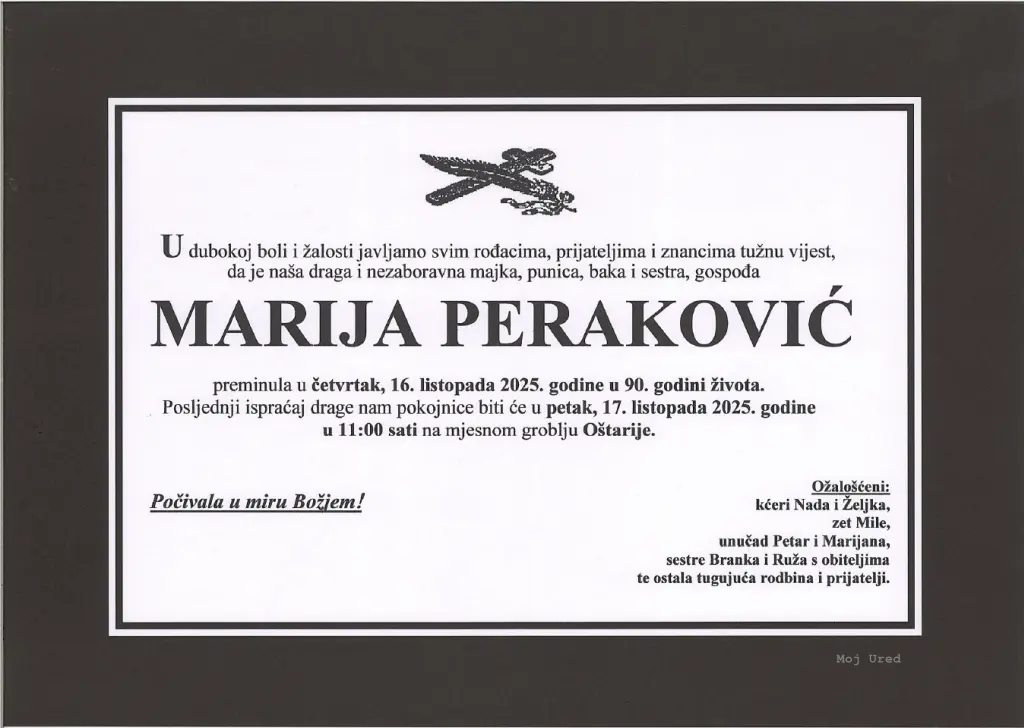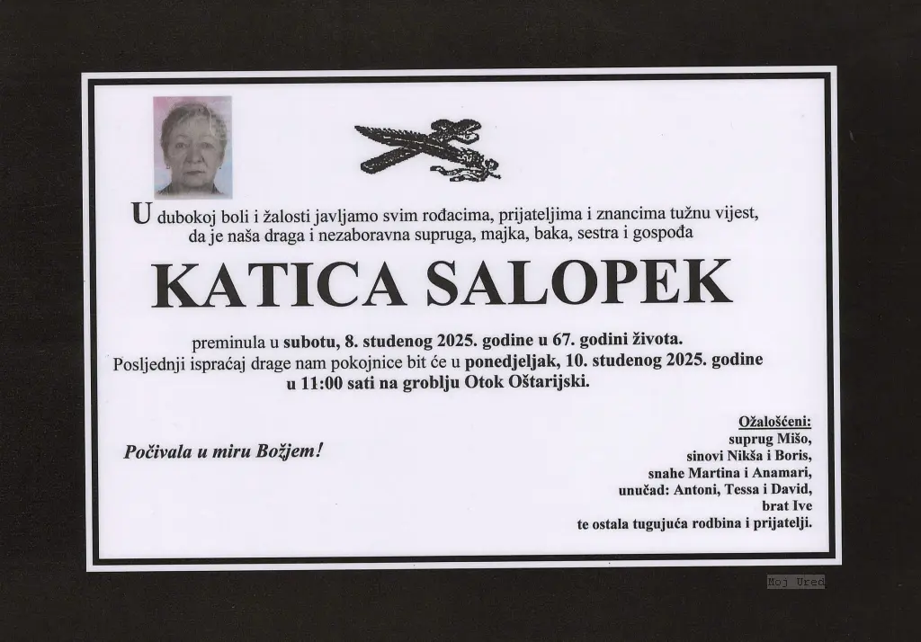 U ovoj rubrici objavljujemo osmrtnice s ogulinskog područja, a ideju da to činimo podržali su posebno i naši čitatelji koji ne žive u Ogulinu. Objavljujemo osmrtnice iz javno dostupnih izvora, te one koje nam pošalju obitelji preminulih.