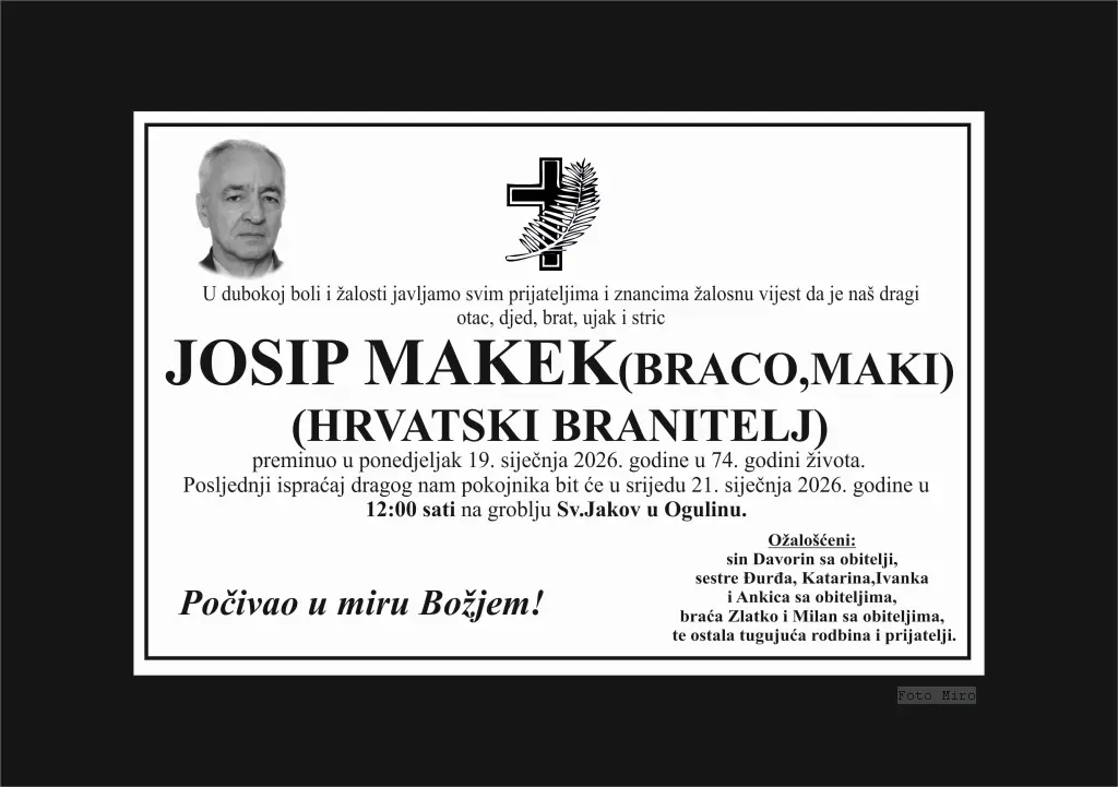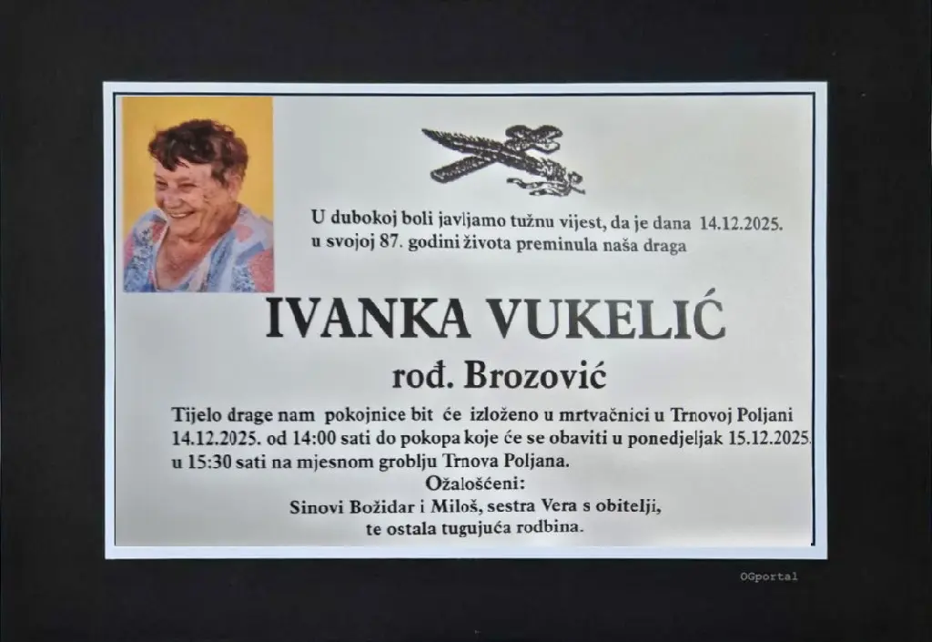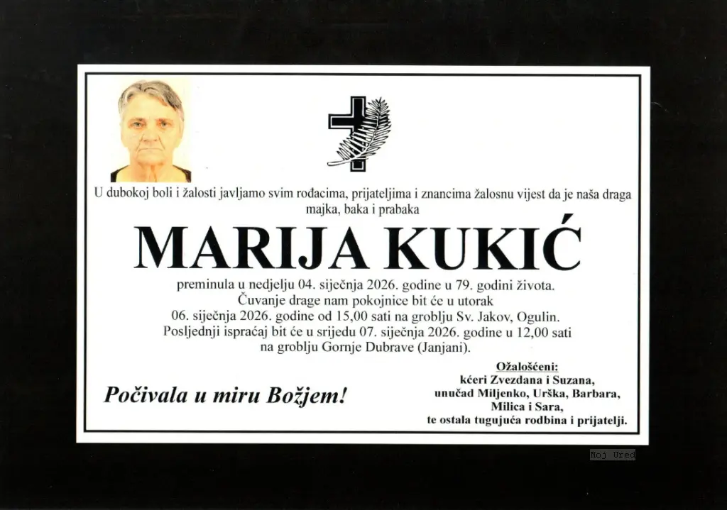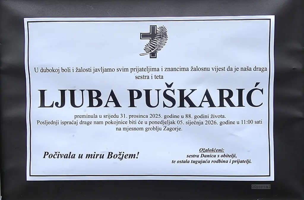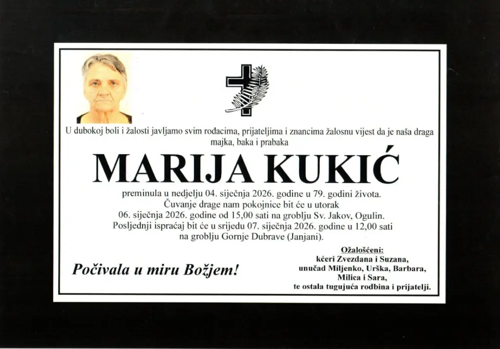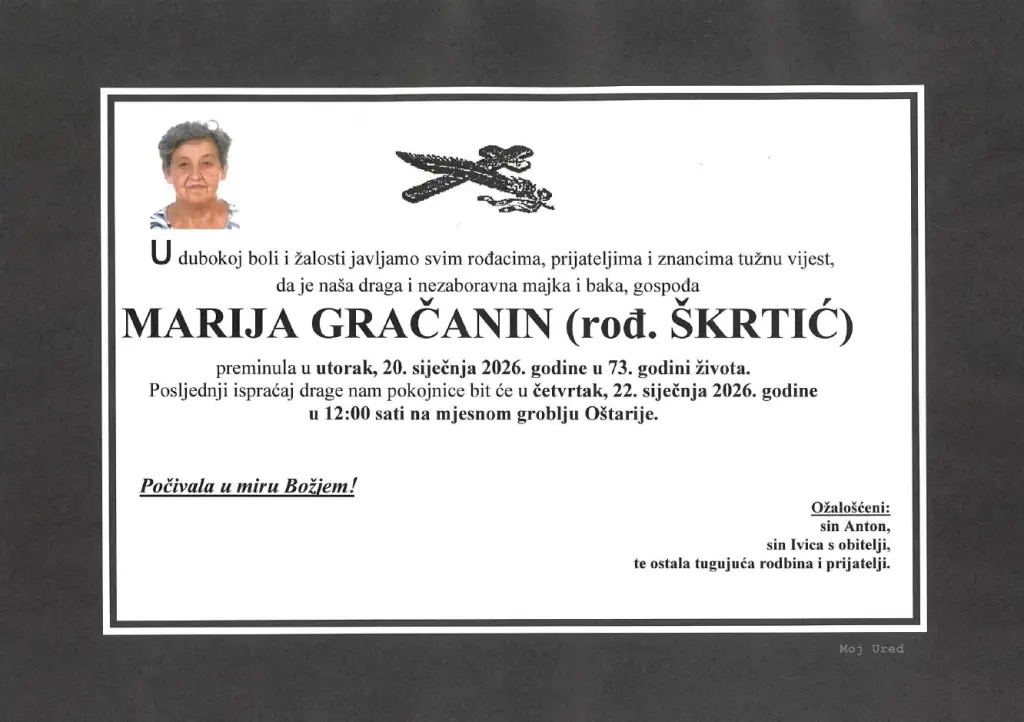 U ovoj rubrici objavljujemo osmrtnice s ogulinskog područja, a ideju da to činimo podržali su posebno i naši čitatelji koji ne žive u Ogulinu. Objavljujemo osmrtnice iz javno dostupnih izvora, te one koje nam pošalju obitelji preminulih.
