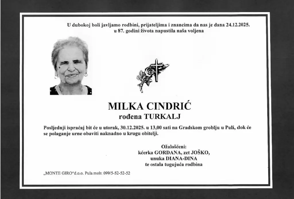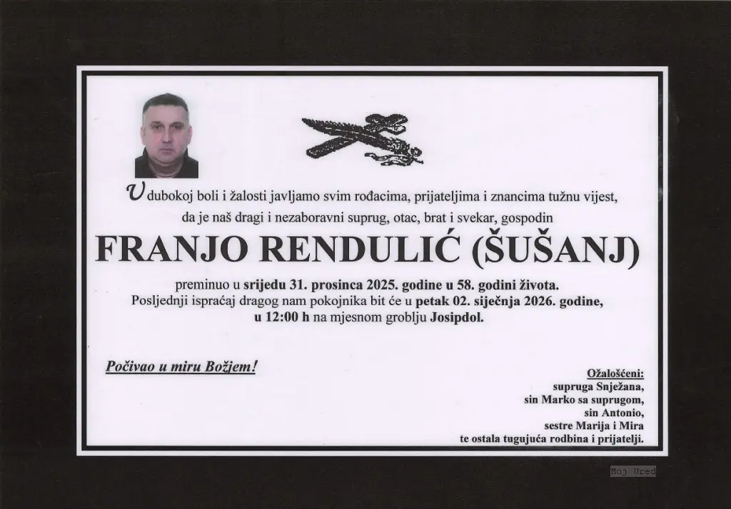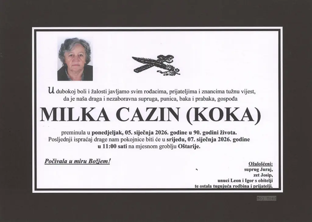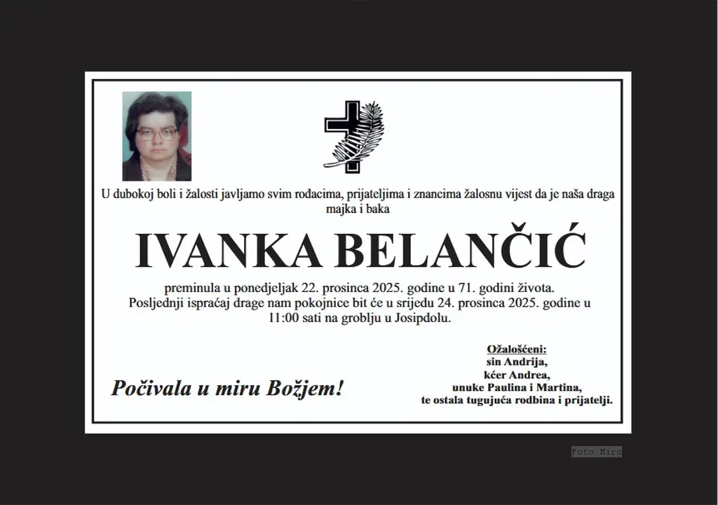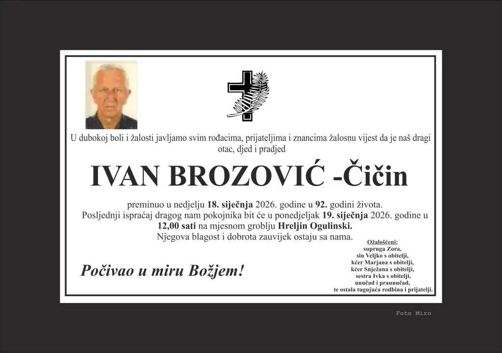 U ovoj rubrici objavljujemo osmrtnice s ogulinskog područja, a ideju da to činimo podržali su posebno i naši čitatelji koji ne žive u Ogulinu. Objavljujemo osmrtnice iz javno dostupnih izvora, te one koje nam pošalju obitelji preminulih.